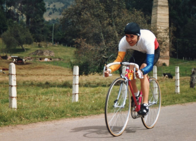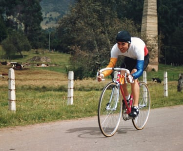 Meses después llegue a Colombia con las pantorrillas y los muslos como gelatinas, listas para transformar esas tortuosas subidas montañosas en planos llanos donde nadie podría alcanzarme... tan así que al volver a patios con el pie en la carrera séptima, el cronometro empezó a correr o parten 13minutos con ,43 segundos al llegar a patios.