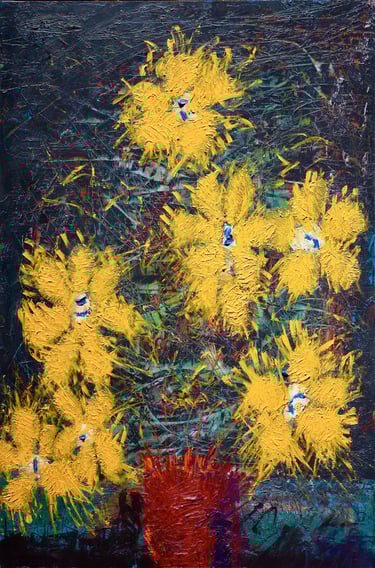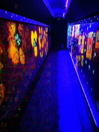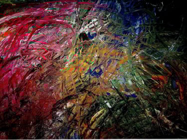Si sus pinturas se ven con luz ultravioleta (negra) y/o gafas estereoscópicas (3D), a menudo se transforman sorprendentemente en apariencia, textura y color.